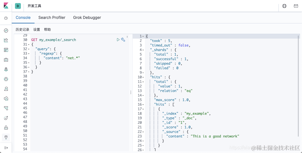 假如我们想搜索以 net 为开头的文档,那么我们可以使用 regexp 来进行如下写的搜索: