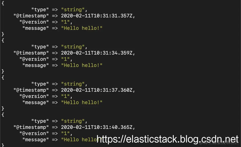 例如,上面的输入配置告诉Logstash监听5044端口上的Beats事件,并将它们直接发送到Elasticsearch。在我的github中有一个具体的例子,你可以在地址github.com/liu-xiao-gu…找到相应的文件。