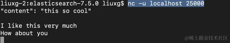 当我们运行起来我们的logstash,我们可以使用如下的命令在另外一个console中运行如下的命令: