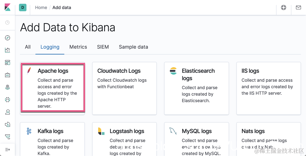 我们选择 “Apache logs”
