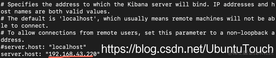同时找到 elasticsearch.hosts,并把自己的 IP 地址输入进去: