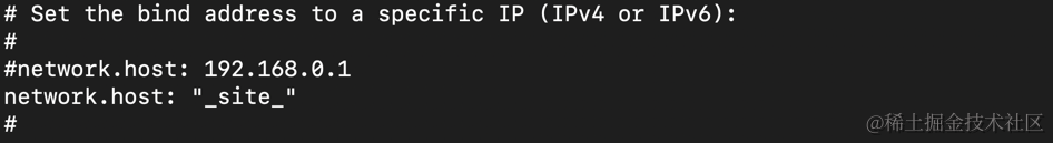 在上面我们把 network.host 设置为 "_site",表明它绑定到我们的本地电脑的 IP 地址。详细说明请参阅 Elasticsearch 的 network.host 说明。