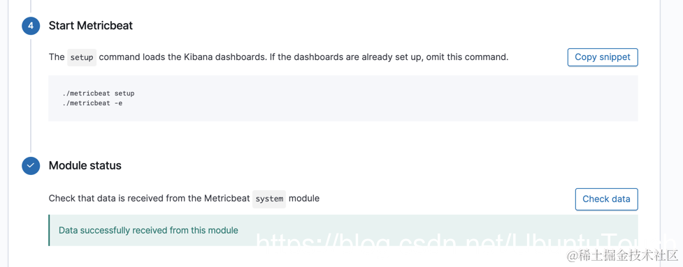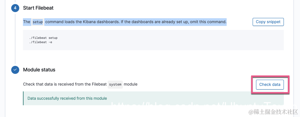 这个时候,我们在Kibana中点击 “Check data” 按钮: