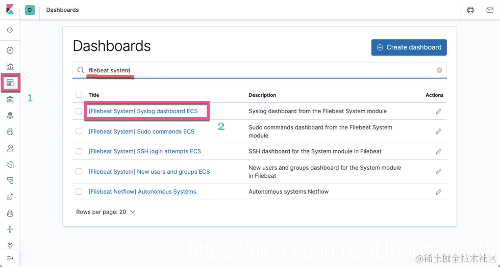 setup 命令将加载 Kibana仪表板。 如果已经设置了仪表板,请忽略此命令。上面命令的输出结果为: