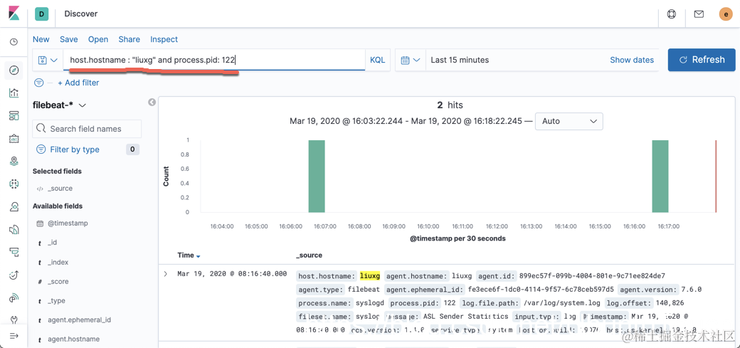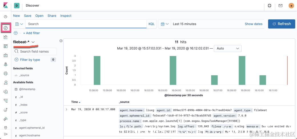 我们可以看到数据已经被 Elasticsearch 成功收到了。