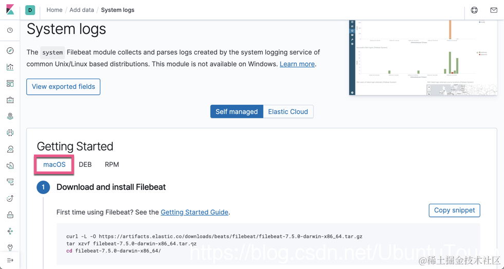 curl -L -O https://artifacts.elastic.co/downloads/beats/filebeat/filebeat-7.5.0-darwin-x86_64.tar.gz