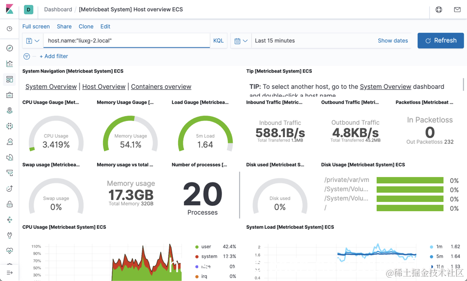 我们来点击 “ [Metricbeat System] Overview ECS”: