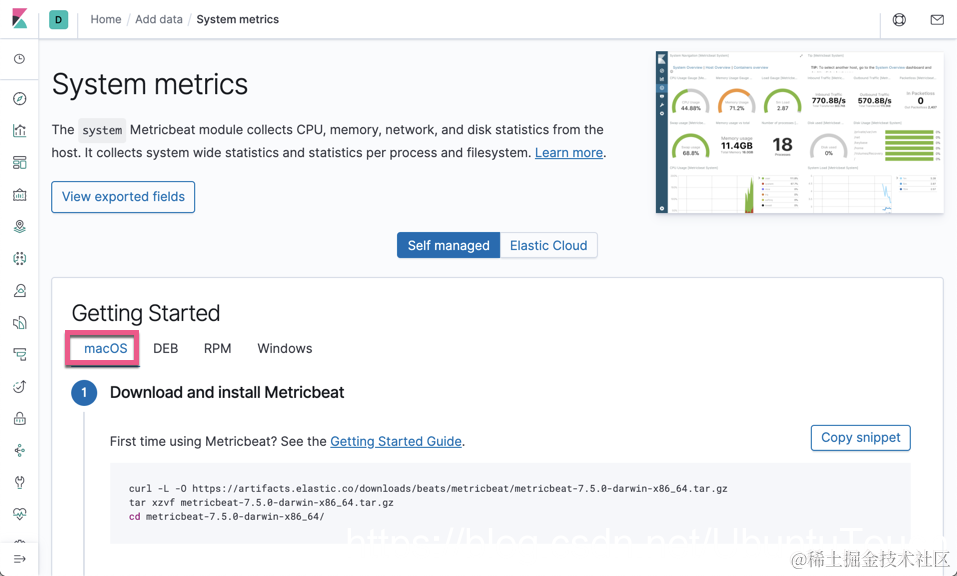 curl -L -O https://artifacts.elastic.co/downloads/beats/metricbeat/metricbeat-7.5.0-darwin-x86_64.tar.gz