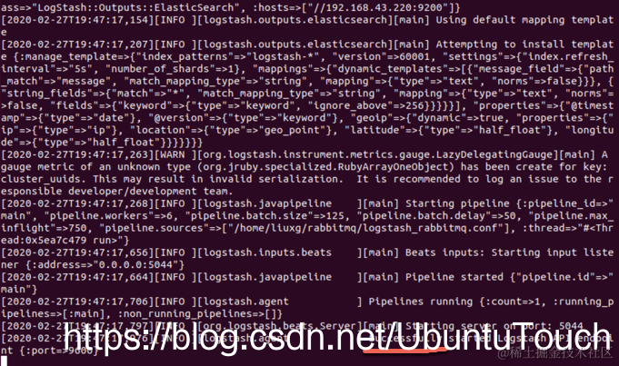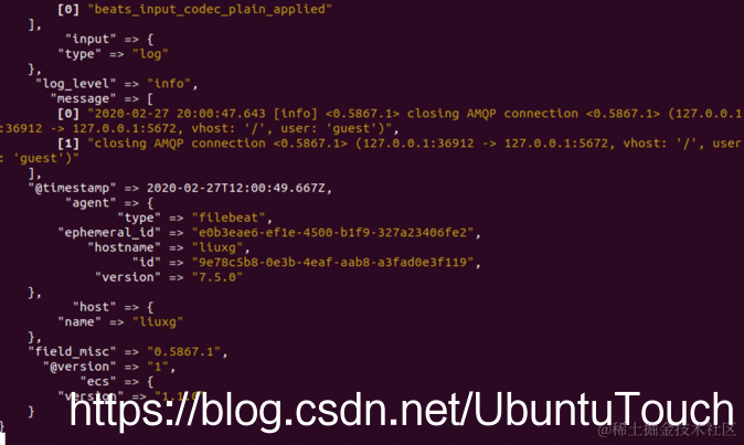 liuxg@liuxg:~/logstash/logstash-7.5.0$ ./bin/logstash -f ~/rabbitmq/logstash_rabbitmq.conf
