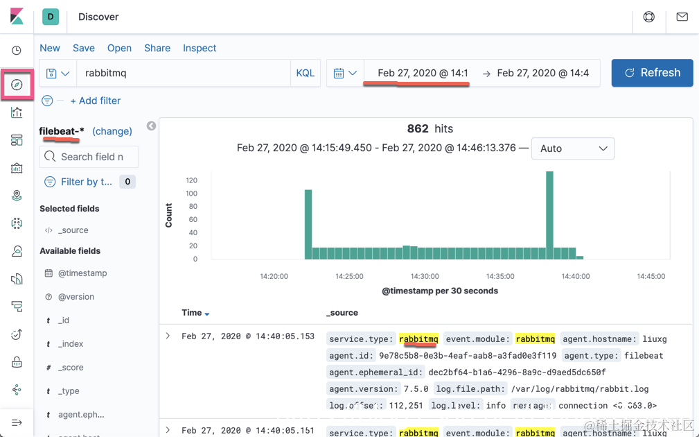 我们将 RabbitMQ 日志传送到Elastic Stack的方法是使用 Filebeat 和 logstash。如下是我的配置: