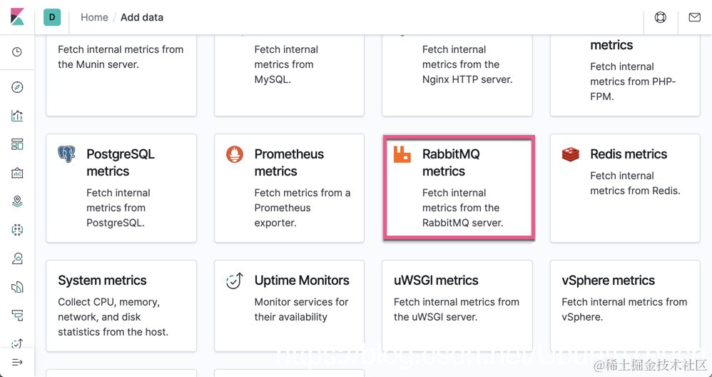 接下来,我们选择 “RabbitMQ metrics”: