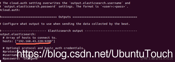 把我们的 elasticsearch 的 IP 地址填入。针对我的情况,这个地址是 192.168.43.220: