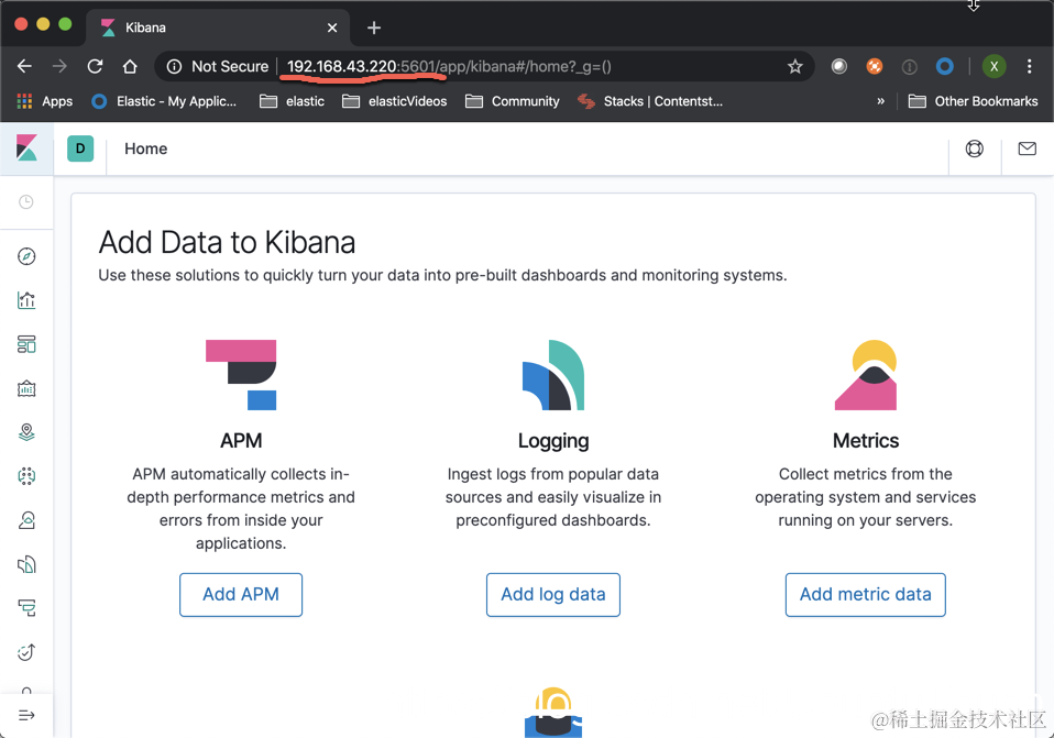 保存我们的 kibana.yml 文件,并运行我们的 Kibana。同时在浏览器的地址中输入自己的 IP 地址及 5601 端口: