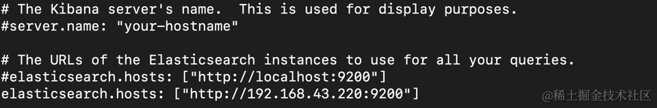 同时找到 elasticsearch.hosts,并把自己的 IP 地址输入进去: