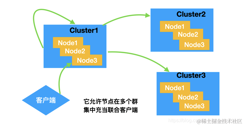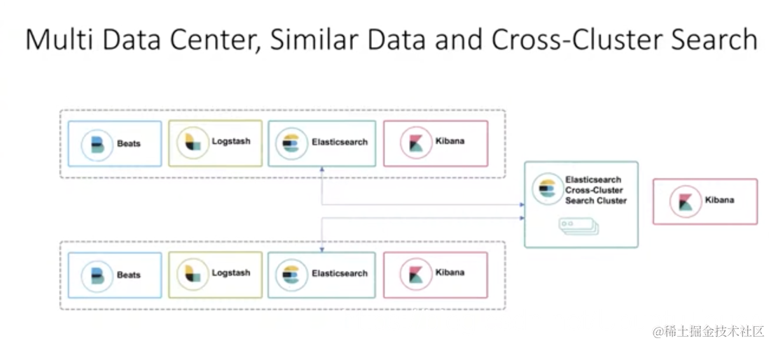 如上面所述,当我们的 client 向集群 cluster_1 发送请求时,它可以搜索自己本身的集群,同时也可以向另外的两个集群 cluster_2 及 cluster_3 发送请求。最后的结果由 cluster_1 返回给客户端。