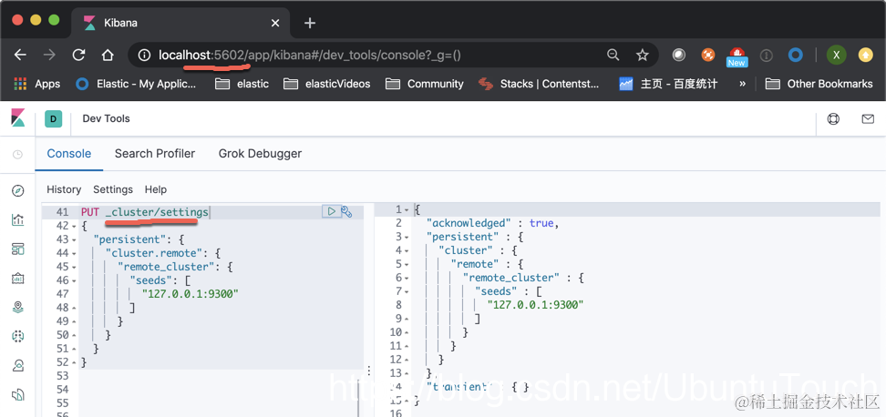 在上面,我们在 cluster_2 里配置可以连接到 cluster_1 的这样设置。因为 cluster_1 的 transport 口地址是 9300。