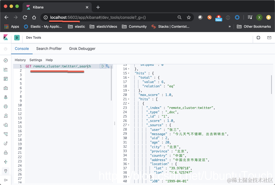 在上面,我们可以看到我们已经成功地在 cluster_1 上创建了 twitter 索引,那么我们怎么在 cluster_2 上对这个进行搜索呢?