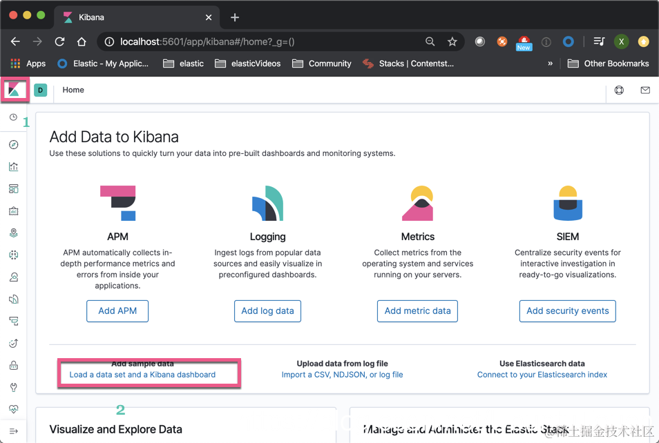 在 Kibana_1 中,我们通过如下的方法来加载我们的测试数据: