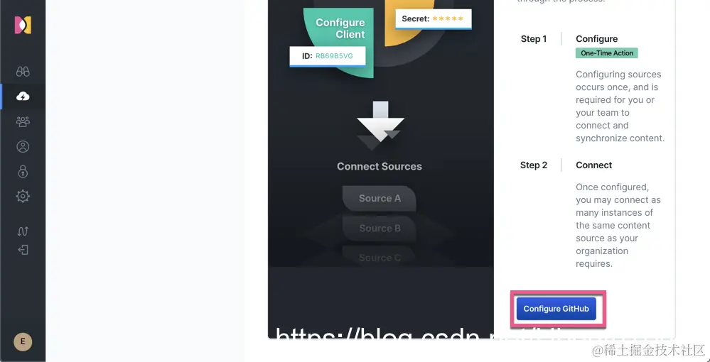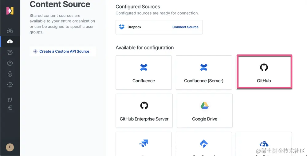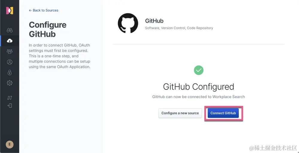 具体添加 github 的源, 我们可以参阅链接 “Github connector”。GitHub 连接器要求你在 GitHub 中创建一个 OAuth 应用。添加 GitHub 要求你属于 GitHub 组织-并且在 GitHub 组织内具有 OAuth 权限。