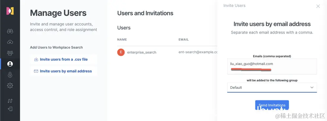 我们填入自己的邮件信息,并点击 “Send Invitations”:
