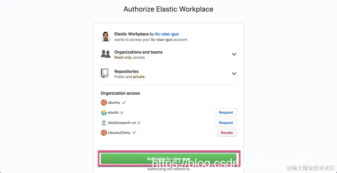 我们点击 “Authorize liu-xiao-guo” 按钮: