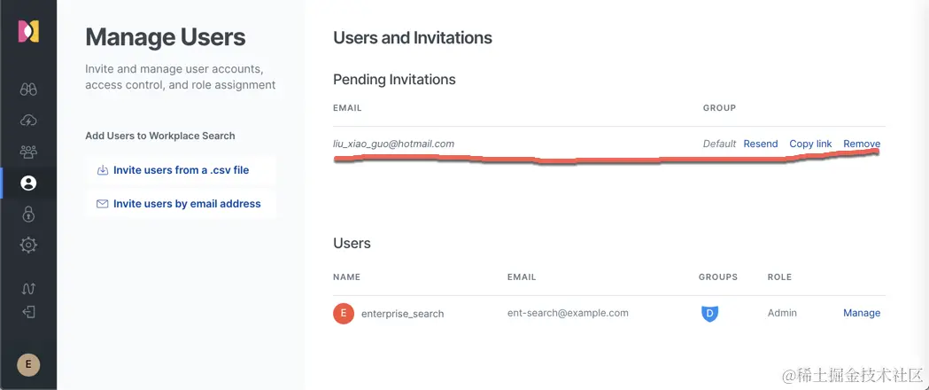 如果我们没有配置适当的 SMTP 配置,那么左边的两个超链接将不会被显示。我们选择 “Invite users by email address”: