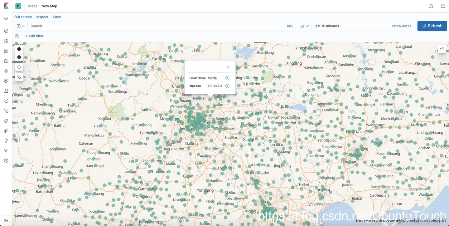 我们从上面可以看到所有的文档都显示在地图的中国的位置。我们放大我们的地图,可以看到如下的画面: