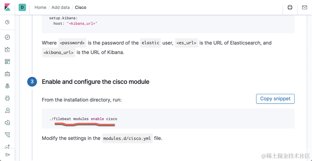 在上面,它显示了许多的应用场景。我们可以根据自己的需求来按照上面的要求来进行安装。大多数情况下,都是安装 Filebeat,并启动相应的模块: