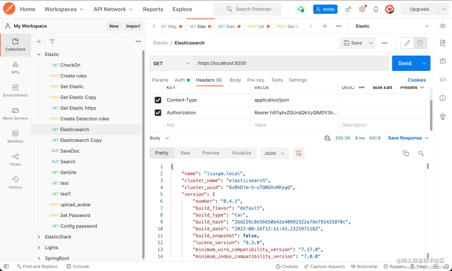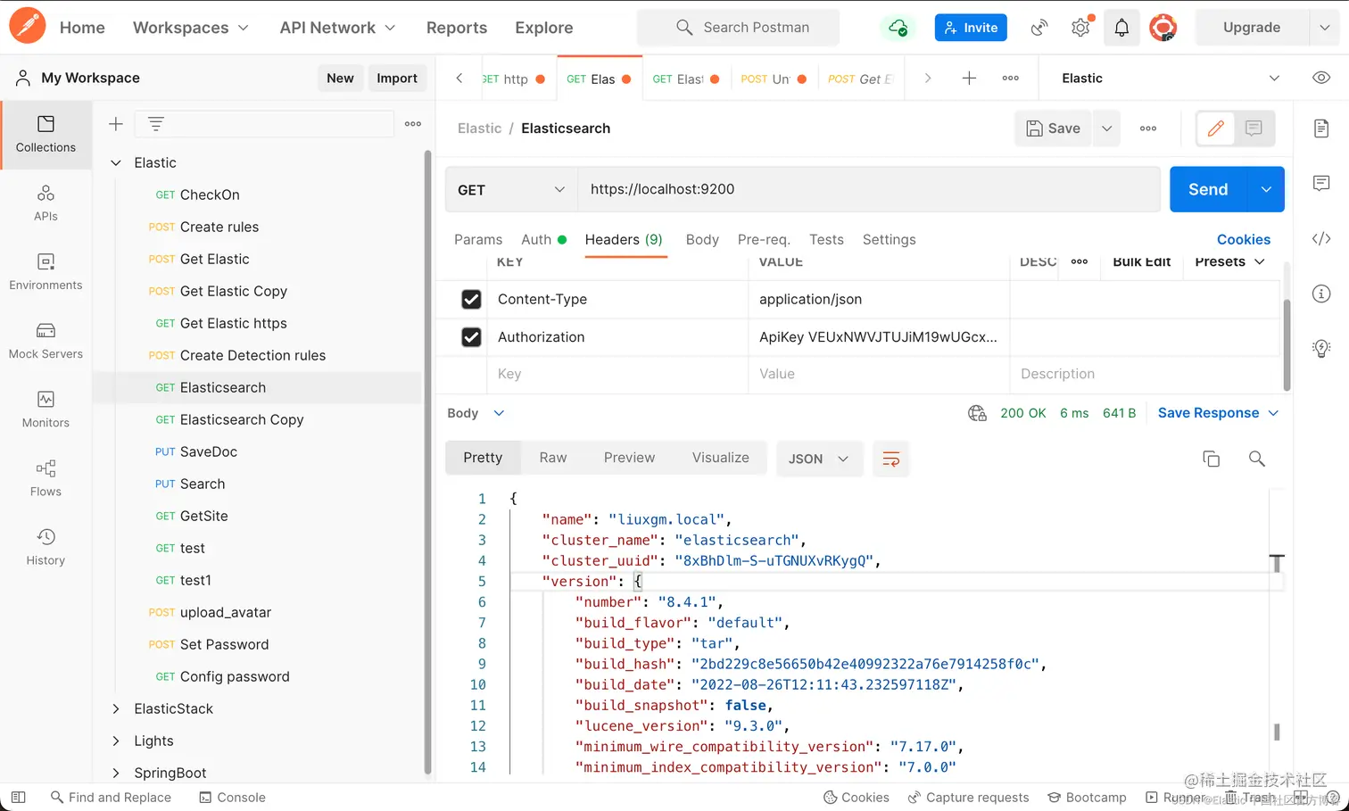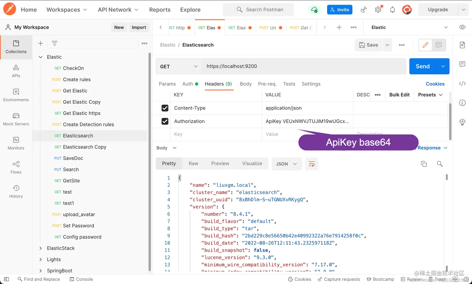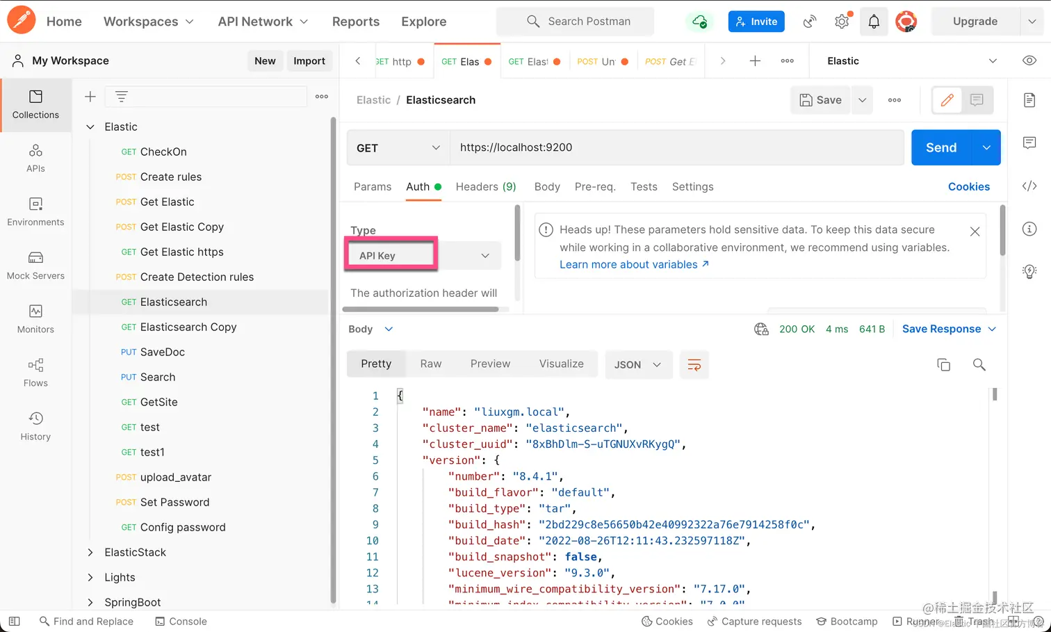 我们可以按照我之前的文章 “Elasticsearch:设置 Elastic 账户安全” 设置用户名及密码。一旦设置好用户名及密码后,当我们使用 Postman 或各类语言的API来访问 Elasticsearch 时,我们必须使用用户名及密码来访问。