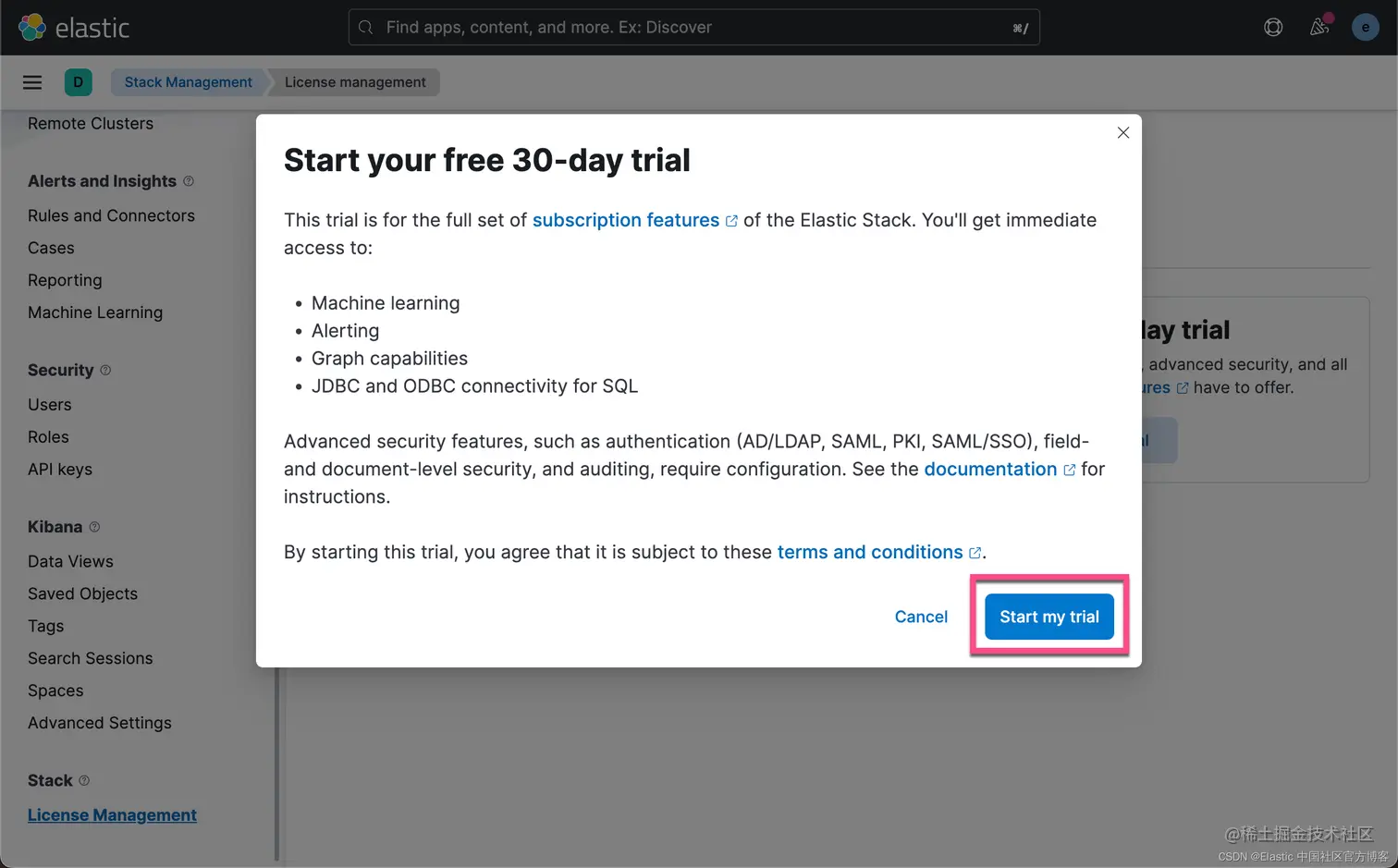 我们可以参考另外一篇文章 “Elasticsearch:无需基本身份验证即可创建用于访问的不记名令牌” 来创建一个访问的 token。针对这个功能,我们需要打开白金版试用功能: