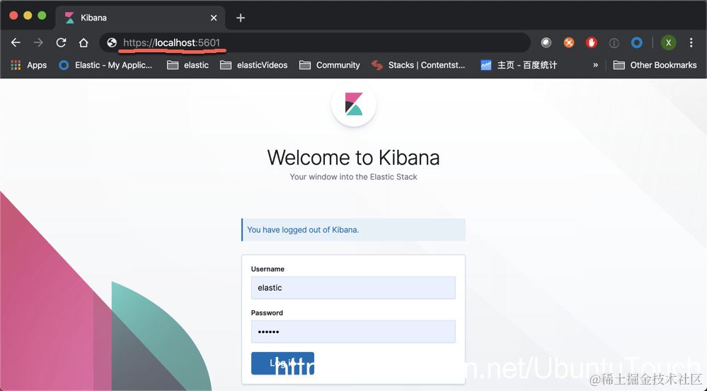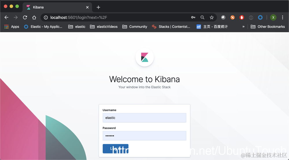 我们打入 elastic 及我们之前设定的 Elasticsearch 的密码,再点击 “Sign In”:
