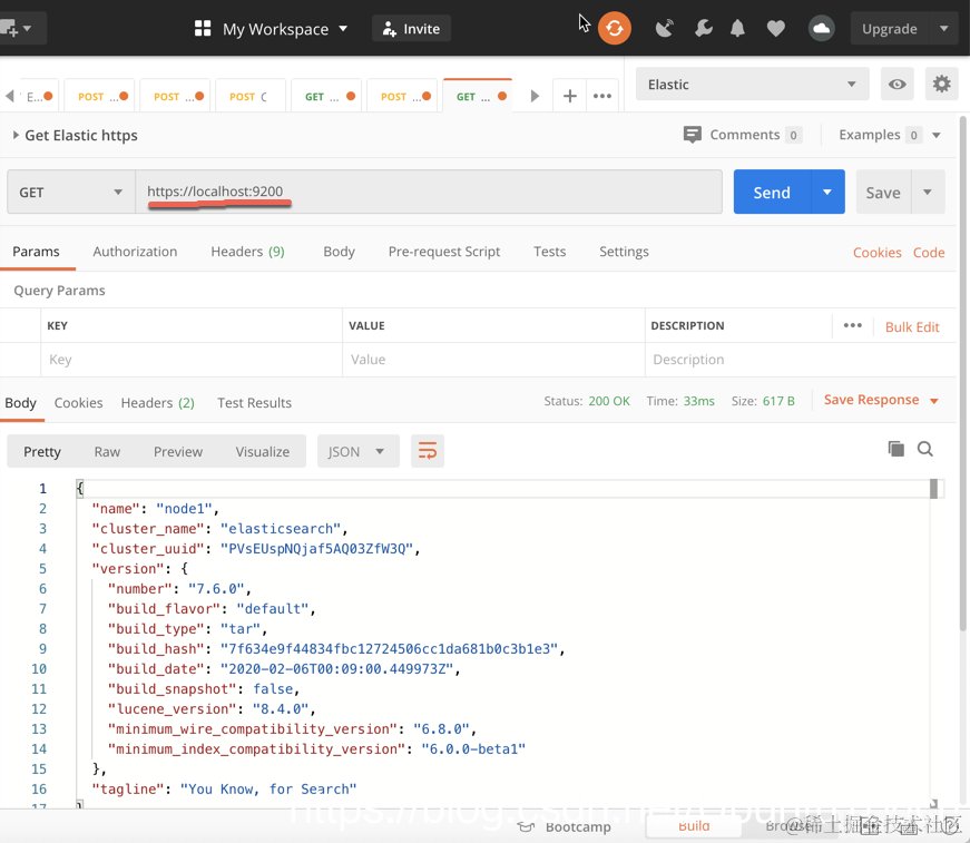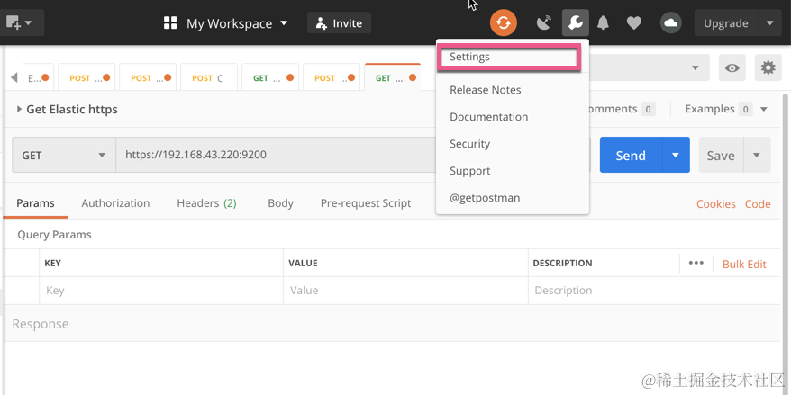经过上面的设置后,我们可以在 Postman 中访问具有 https 的 Elasticsearch。关于如何使用 Postman 来访问 Elasticsearch,请参考我之前的文章 “Elastic:使用Postman来访问Elastic Stack”。