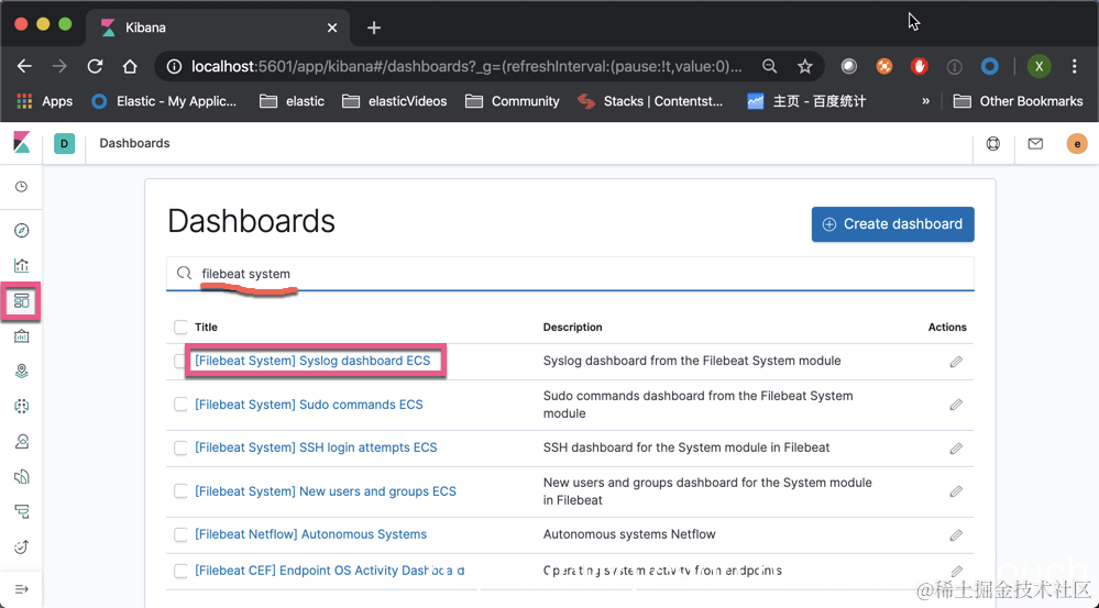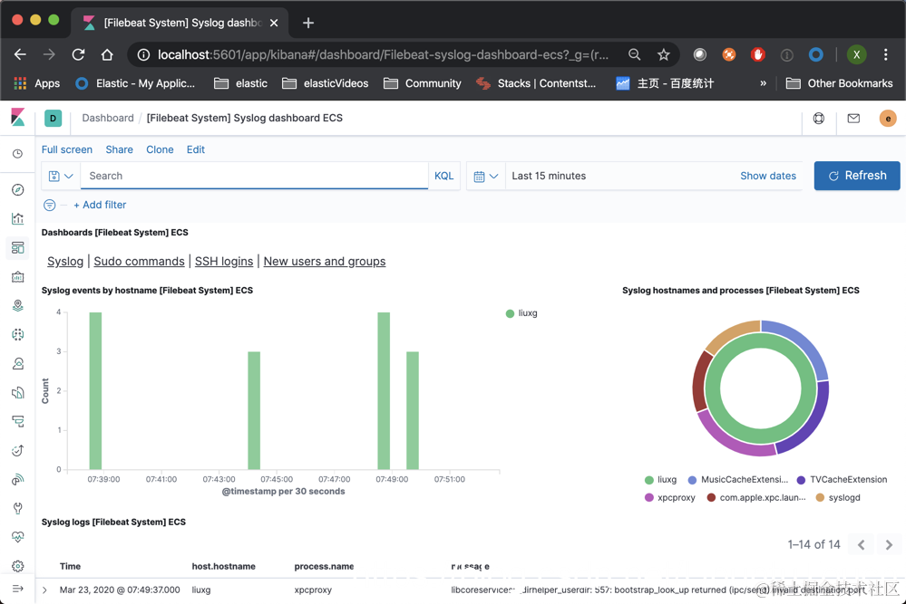 点击上面的 [Filebeat System] Syslog dashboard ECS: