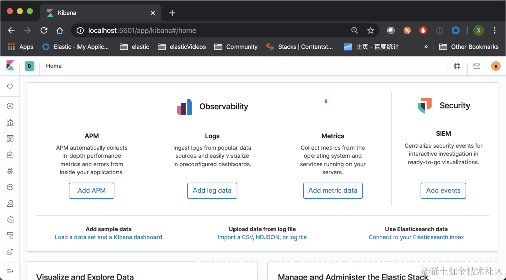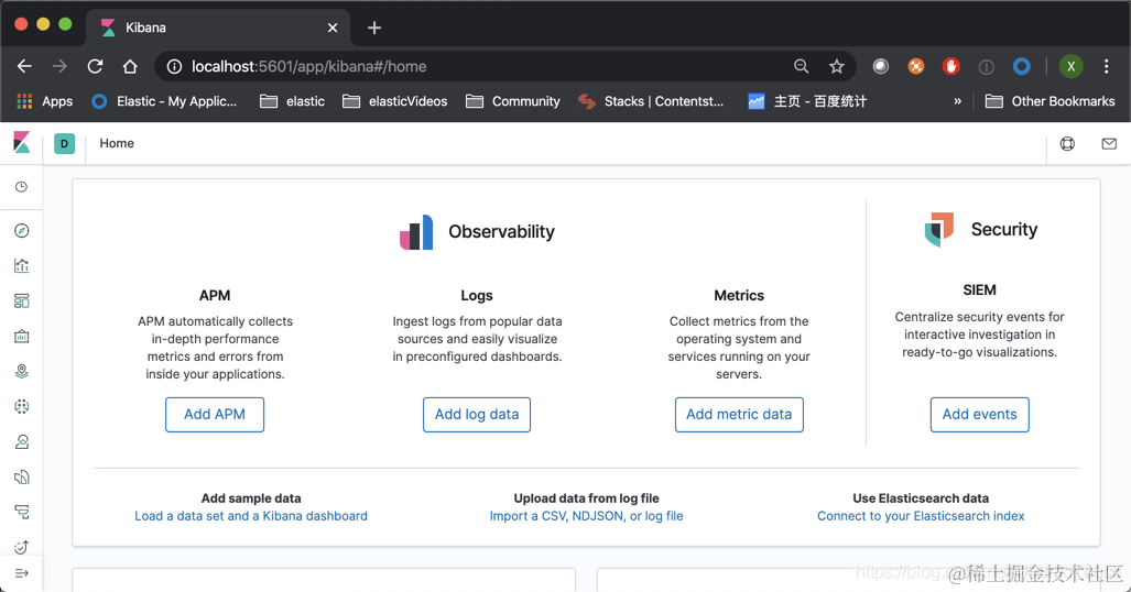 我们输入 elastic 用户的密码,我们就可以进入到 Kibana 的界面中: