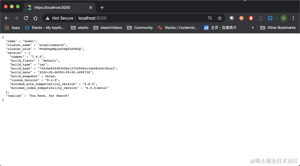 从上面我们可以看出来,我们的 Elasticsearch 的安装时正确的。