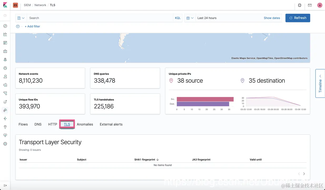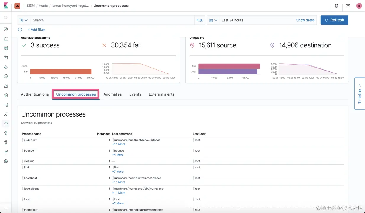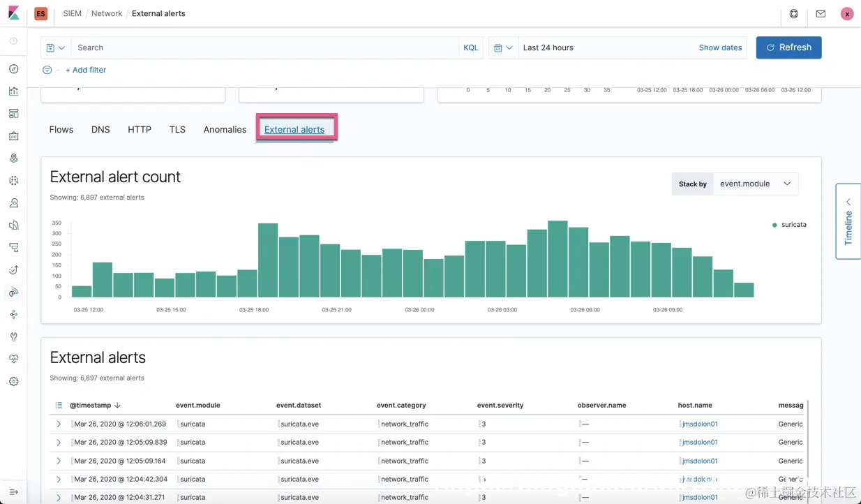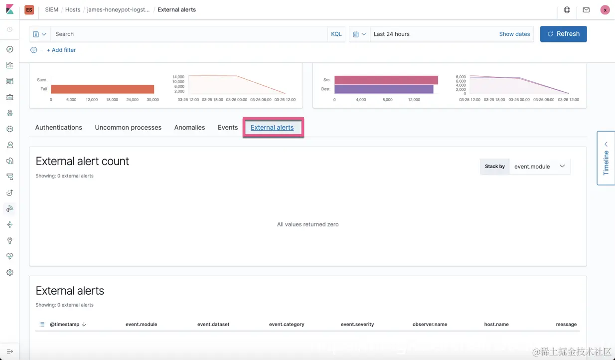 如上图所示,我们可以看见我们关心的两类 Events:Host events 及 Network events。如我们之前的练习一样,它们的数据来源来自于 Auditbeat,Filebeat, Winlogbeat, Packetbeat 及 Elastic Endpoint Security。针对 Elastic Endpoint Security 目前我们还没有涉及。在将来的文章中,我们将分别介绍。