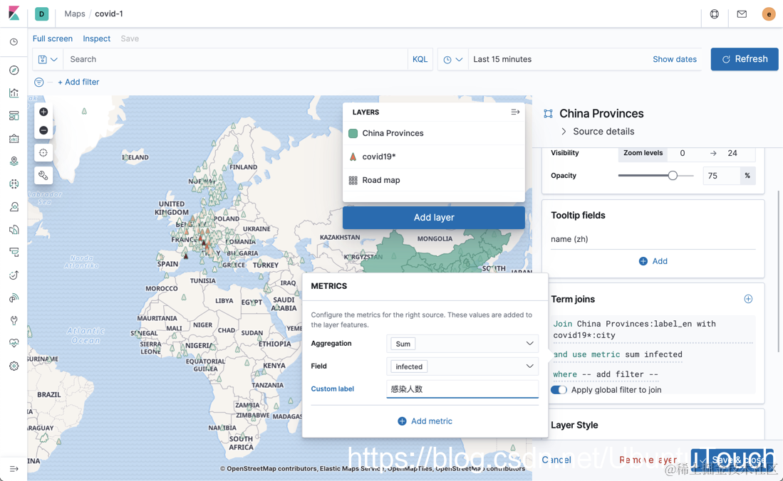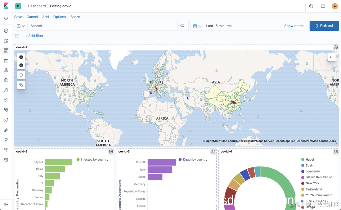 首先,我想说的是这篇文章是我之前的一篇文章“Beats:运用Elastic Stack分析COVID-19数据并进行可视化分析”的续集。在今天的这篇文章中,我们来针对中国区域里的疫情按照每个省来进行展示数据。这个在之前的教程里是缺失的。这个也就是regional map。如果大家想对regional map感兴趣的话,可以参阅我之前的另外一篇文章“Kibana:在Kibana中定制Regional Map”来了解如何定制一个regional map。