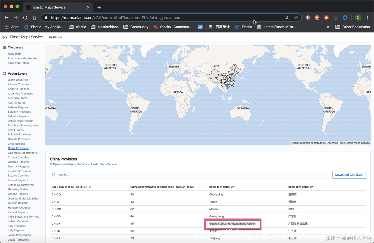 EMS 也即Elastic Map Service。我们可以打开EMS:maps.elastic.co/v7.6/index.…: