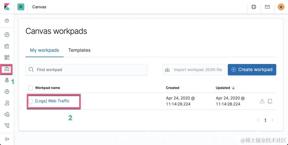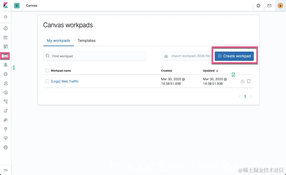 打开Kibana,我们点击Canvas: