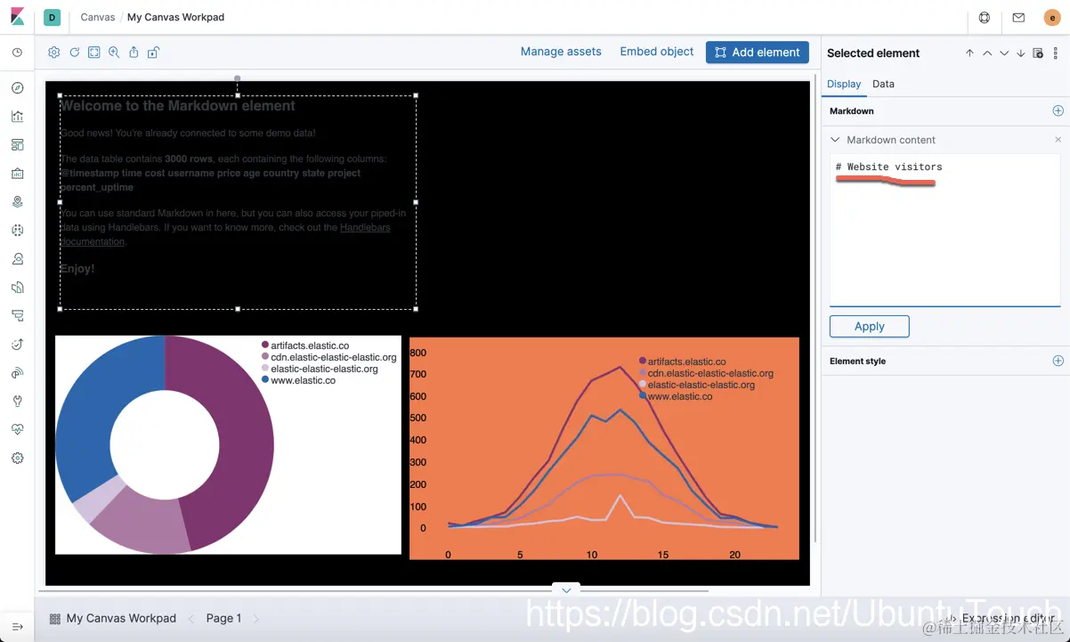 接下来,我们为我们的展示添加一个title。我们再次点击Add element。这次我们选择Markdown: