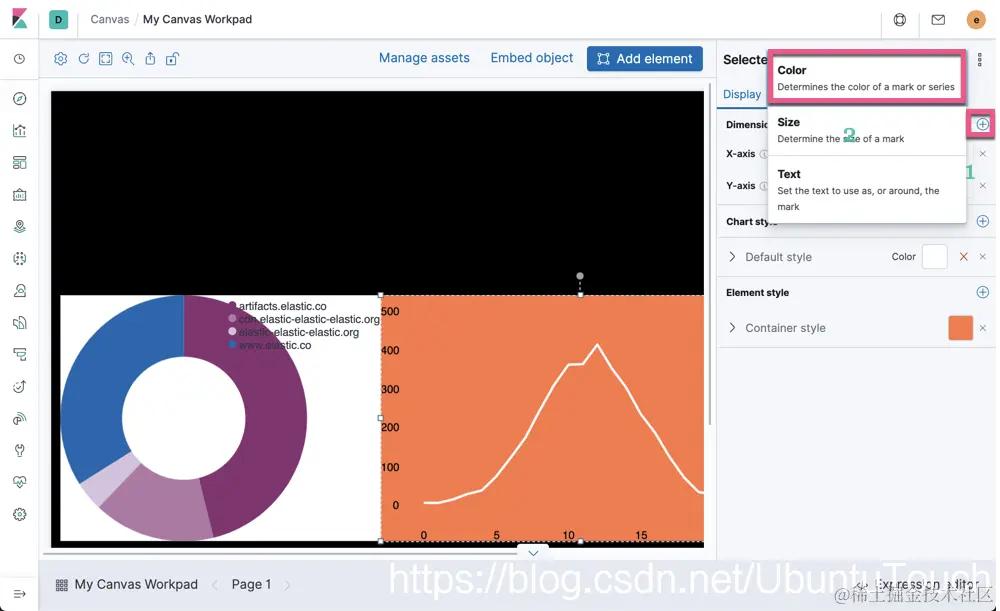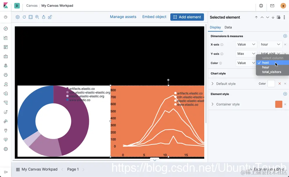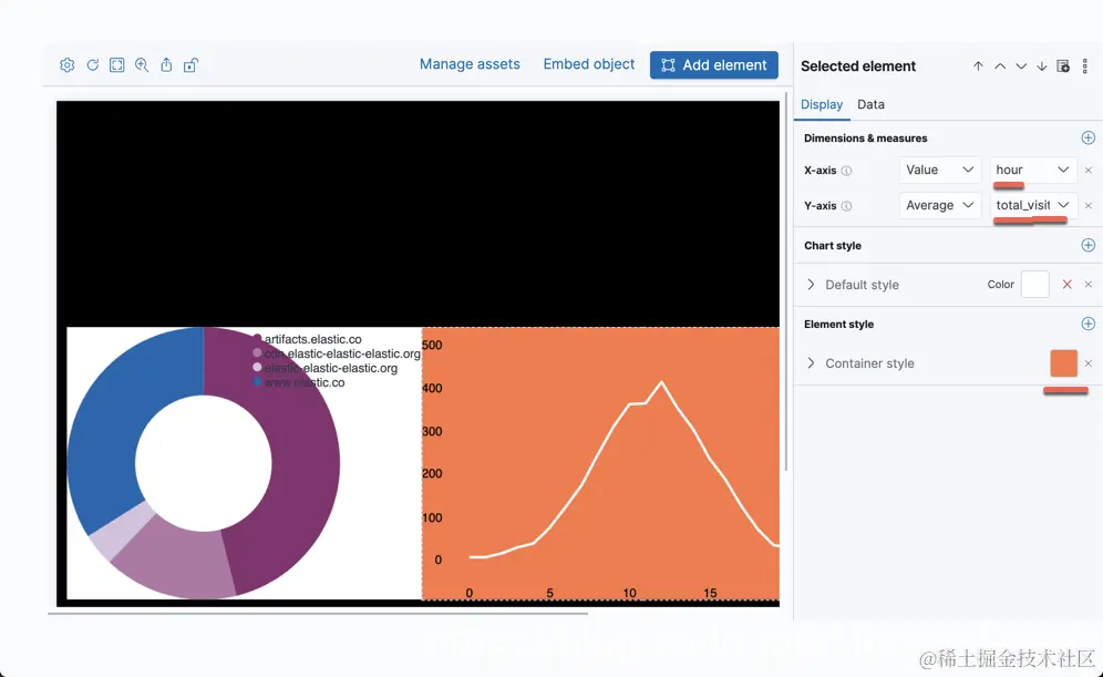 这样,我们就完成了第一个Pie的数据展示。我们再次选择Add element按钮。我们这次选择Line chart: