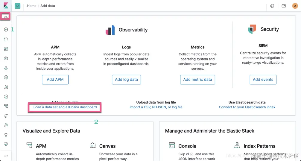 点击上面的Load a data set and a Kibana dashboard: