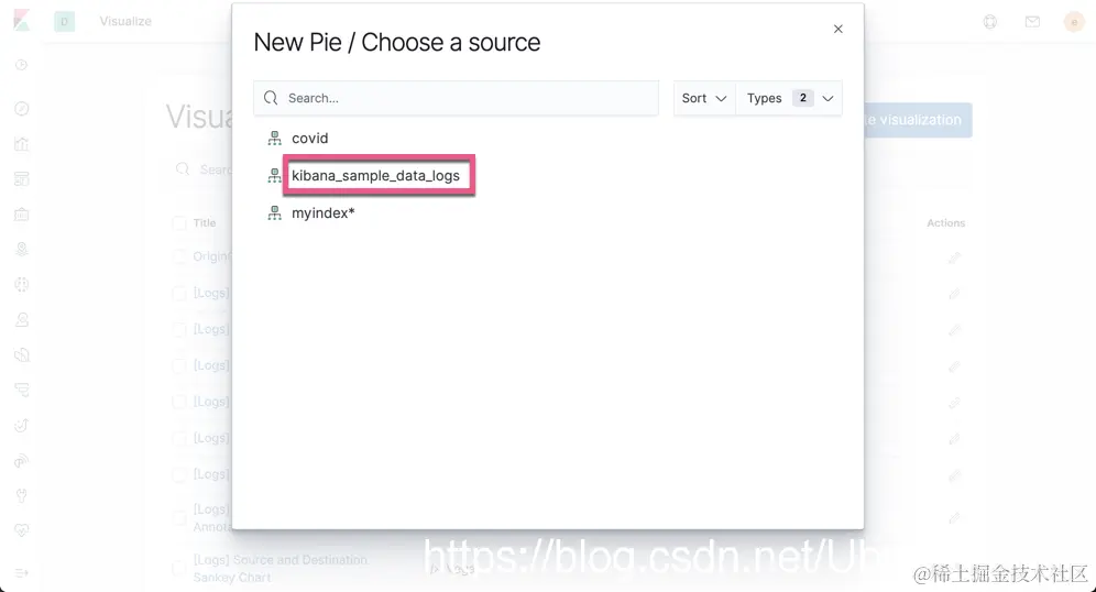 选择我们刚刚导入的kibana_sample_data_logs: