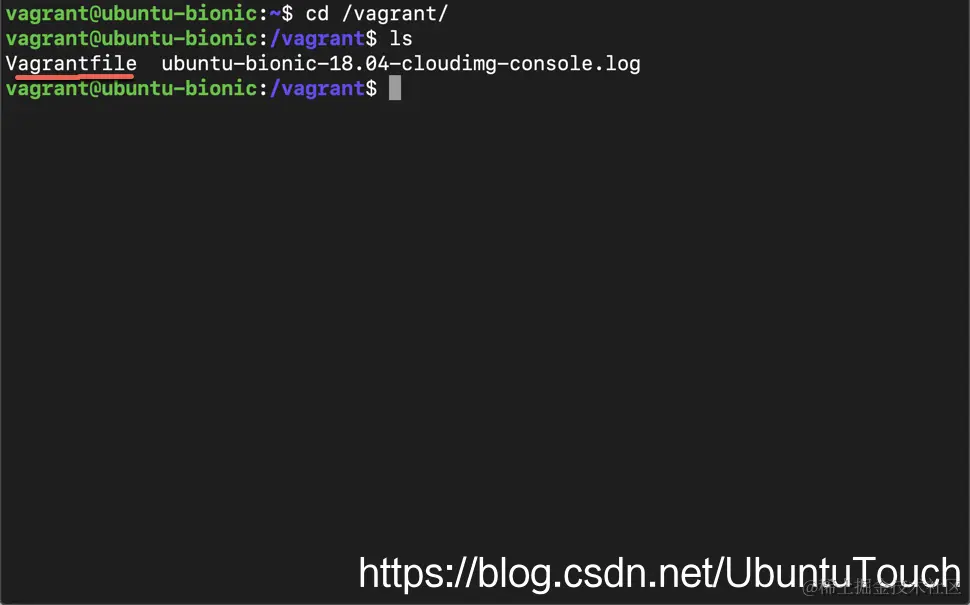 在默认的情况下,在vagrant的环境中,它可以访问到主机的Vagrantfile所在的目录。我们可以直接访问/vagrant目录就可以访问到主机里的文件了。