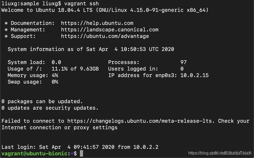 ==> default: Adding box 'ubuntu/bionic64' (v20200402.0.0) for provider: virtualbox
