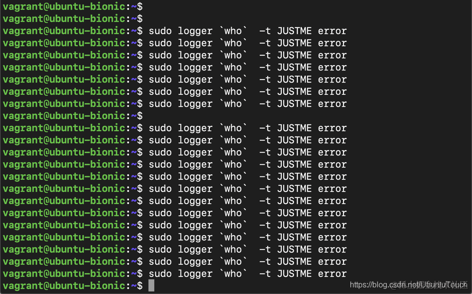 sudo logger `who` -t JUSTME error