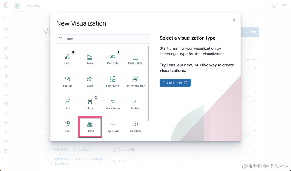 等上面的数据已经加载完毕后,我们来创建一个TSVB的可视化: