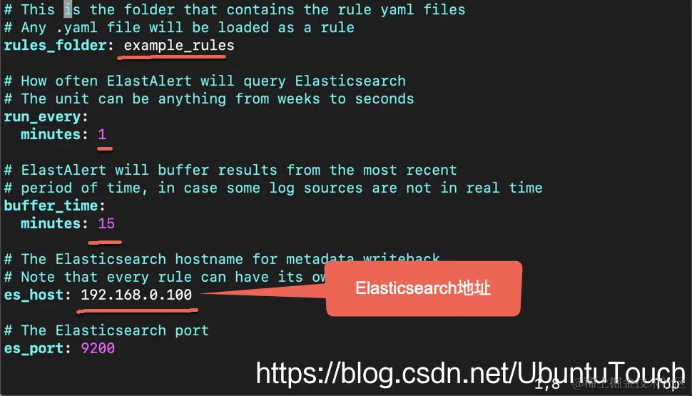 我们可以在 ElastAlert 源码文件的根目录下找到一个叫做 config.yaml.example 的文件: