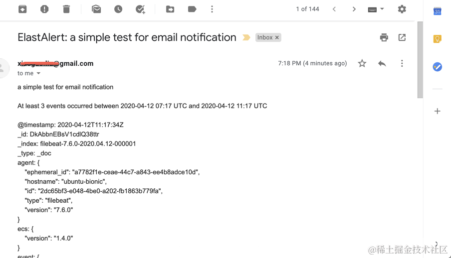 ElastAlert 是一个简单的框架,用于从 Elasticsearch 中的数据中发出异常,尖峰或其他感兴趣模式的警报。我们可以在地址 elastalert.readthedocs.io/en/latest/e…找到它的使用说明。在今天的教程中,我将一步一步地介绍如何搭配环境,并从Elasticsearch发送通知给电子邮件。在我之前的教程 “Elastic:使用ElastAlert发送通知” 中,我相信地介绍了如何发送通知到 Slack 中。
