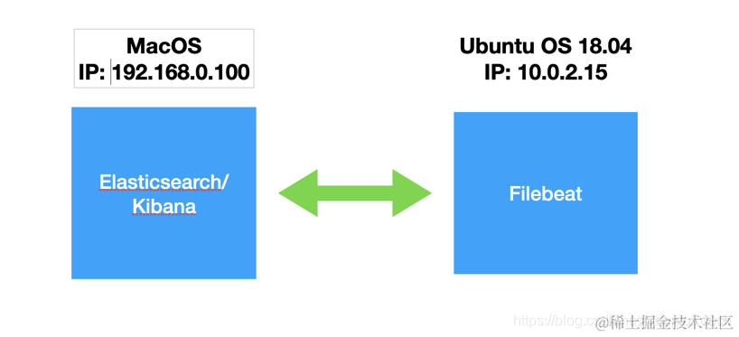 在我的环境中,我使用iMac电脑运行 Elasticsearch 及 Kibana,而在另外一个虚拟机上运行我们的 Filebeat。Filebeat 把 Ubuntu 机器里的 syslog 传入到 Elasticsearch 中供分析,同时 ElastAlert 周期性地从 Elasticsearch 中获取数据,并依据制定的规则来发送通知。
